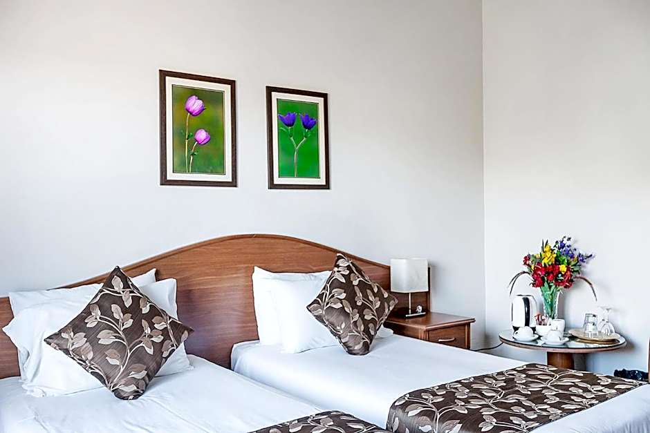 The spacious twin room features air conditioning, a mini-bar, a tea and coffee maker as well as a balcony with garden views. The unit has 2 beds.